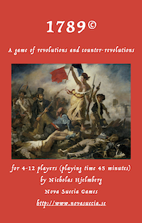 1789 features not only two secret teams with opposite goals but also a third team that wants both to fail. There is also a spatial element, whereby players may observe and draw conclusions from which crises the other players choose. Lastly, the victory condition to name all other team members offer rich opportunities for bluffing and double-bluffing.