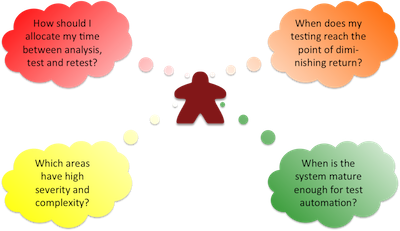 So far, so good, but how about the other two questions? Where is the testing challenge and where are the meaningful testing decisions? As testers, we know that we never have enough time and resources for our testing, and our game must capture and convey this knowledge.