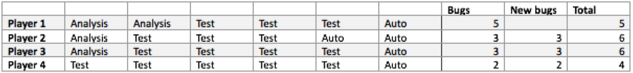 and all players actually finished on the same bug value: 2. I did explain how the game concepts related to test