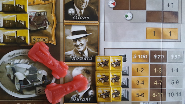 As if there weren’t enough decisions already, you also get to choose one historical character each round to help you manage your corporation. The abilities of each character are seemingly limited (Ford lets you build one extra factory, Howard lets you sell two extra cars, Chrysler lets you discard loss cubes and so on) but they can be crucial to your strategy to give you that little edge you need at the right time and the right place.