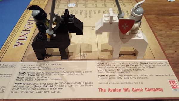 Unfortunately, Britannia's defining characteristic of History writing is also a challenge to new players. All invasions have their fixed rounds and are clearly printed on the board but it's not until you've played a couple of games that you start understanding the impact of a "major Danish invasion". It's not a flaw of the game, since it does reward repeated plays, but new players should be constantly reminded of upcoming invasions so that they may plan for them.