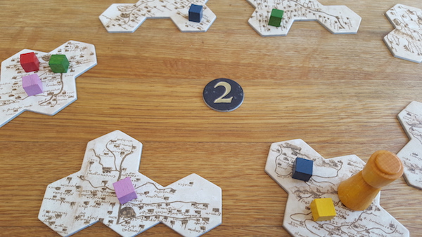 the players through an interesting mini game linked to the turn order. Each player has turn order discs numbered 1 to 5, of