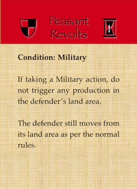 card "Agriculture", a player would simply unlock Economy level 1, build a Farm and get +1 production in all agricultural areas.
