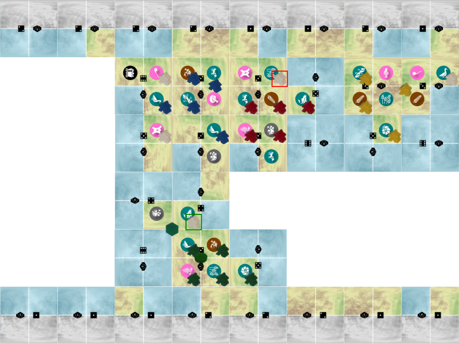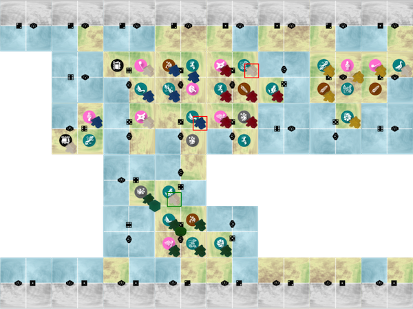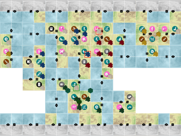 The Romans move to a commodity area and, since their continent now exceeds 2 areas, must reroll