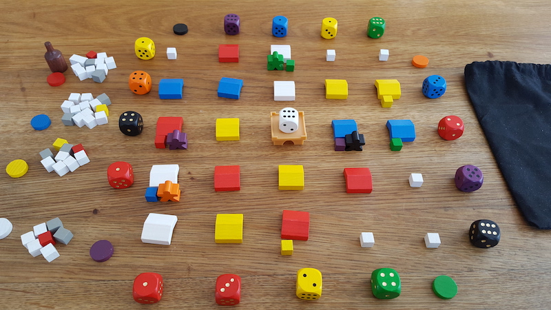 white (12 per player), which hopefully should be enough, and for the victory point cubes, I went with