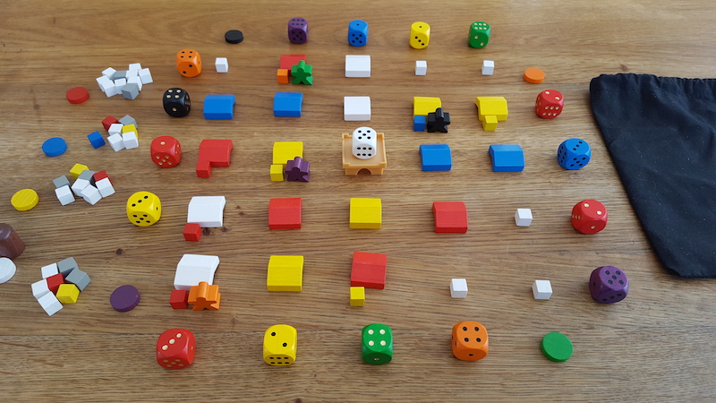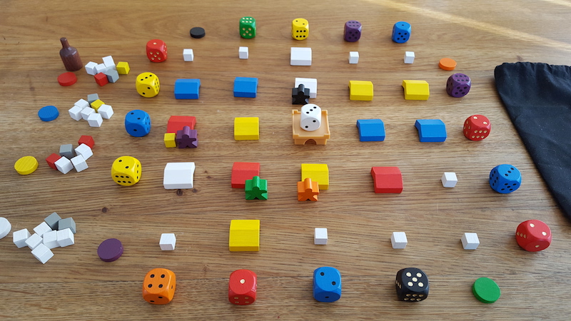 purple cube and a blue cube next to the green whisky baron. White places 1 yellow cube next to the