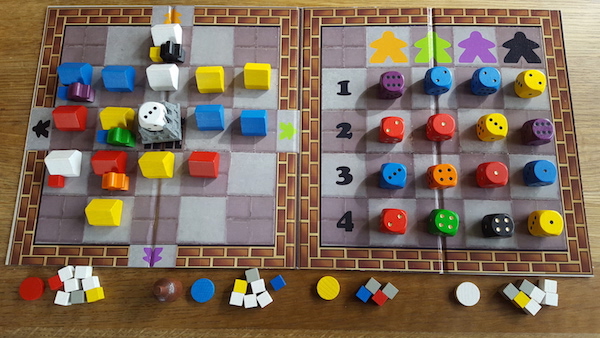 Dyce puts the players in the roles of whisky traders. The players take turns to place shops and trade whiskies in order to