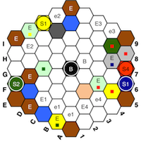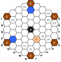 Explorers are marked with an upper case "E" and explored tiles with a lower case "e", both followed by