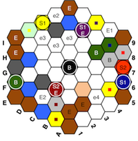 Explorer D7 Explore E3 (Lumber) B Exploit B1 Settler, Expel F2 (Wasteland), Expand D3 Village Explore H6
