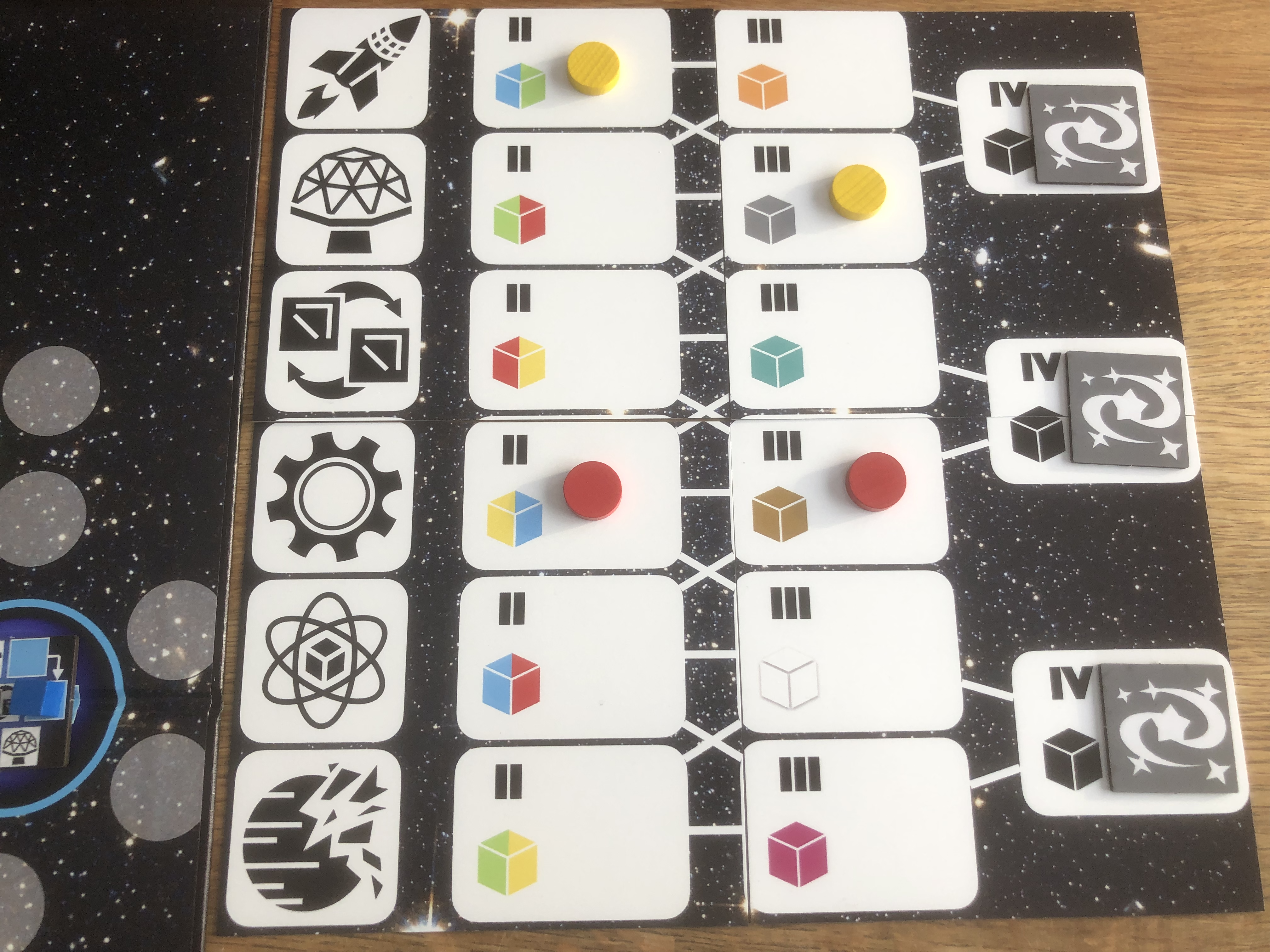 Tech Tree: The players advance on different tech tracks to unlock improved actions.