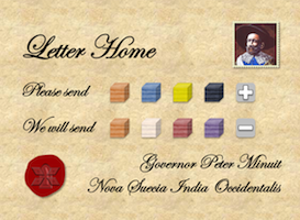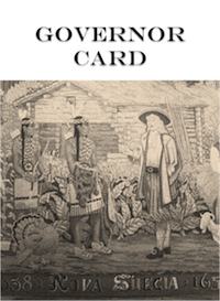 Peter Lindstrom during the last years of the colony as well as game cards depicting the historical governors.