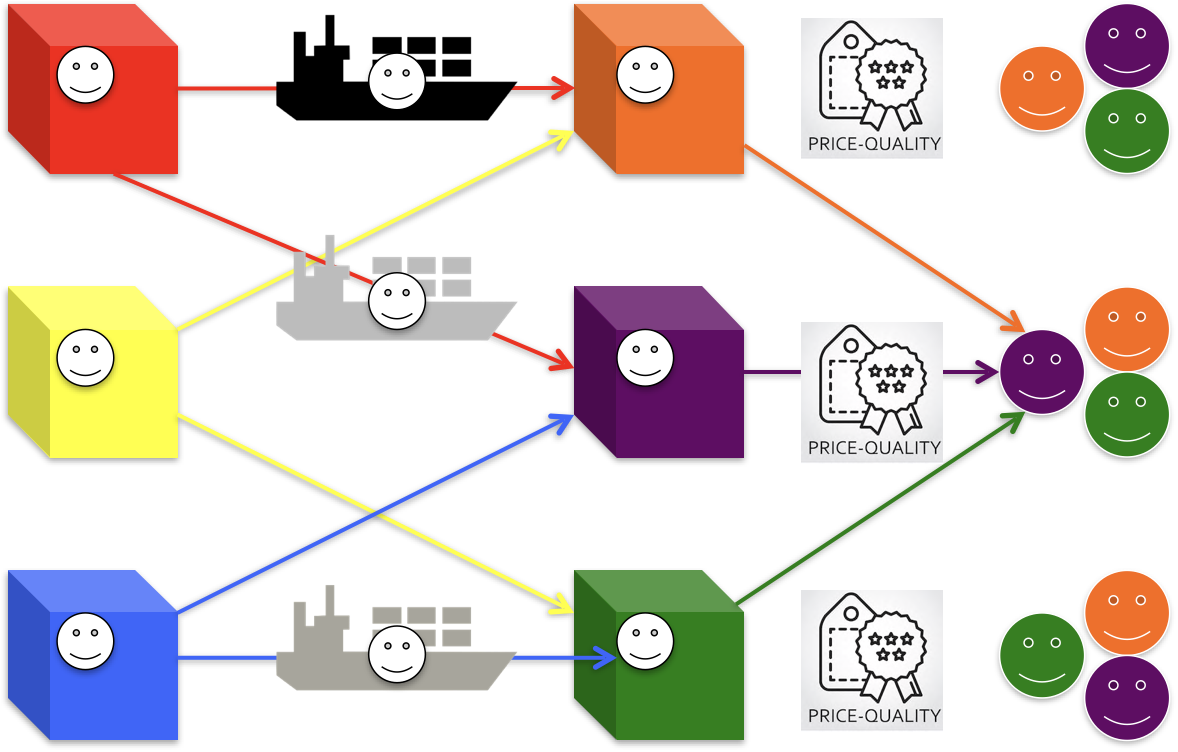 “buy and mix” two different colors to produce their own color. Since each transaction also involves transportation and wages, there could