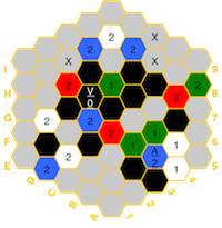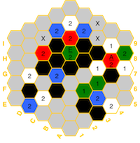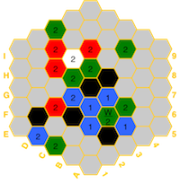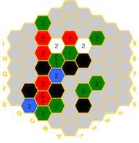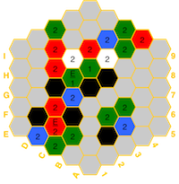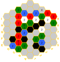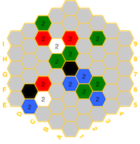 the board in the event of imbalances. The hexes have a color for the element