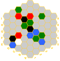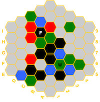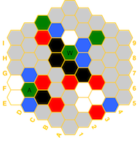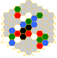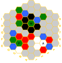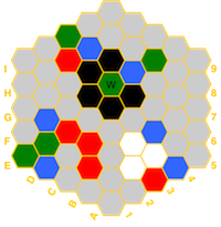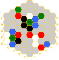 (red=fire, blue=water, white=air, green=earth, black=spirit) and if a hex has a temple,