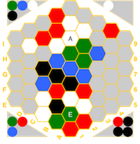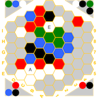 (red=fire, blue=water, white=air, green=earth, black=spirit) and if a hex has an icon,