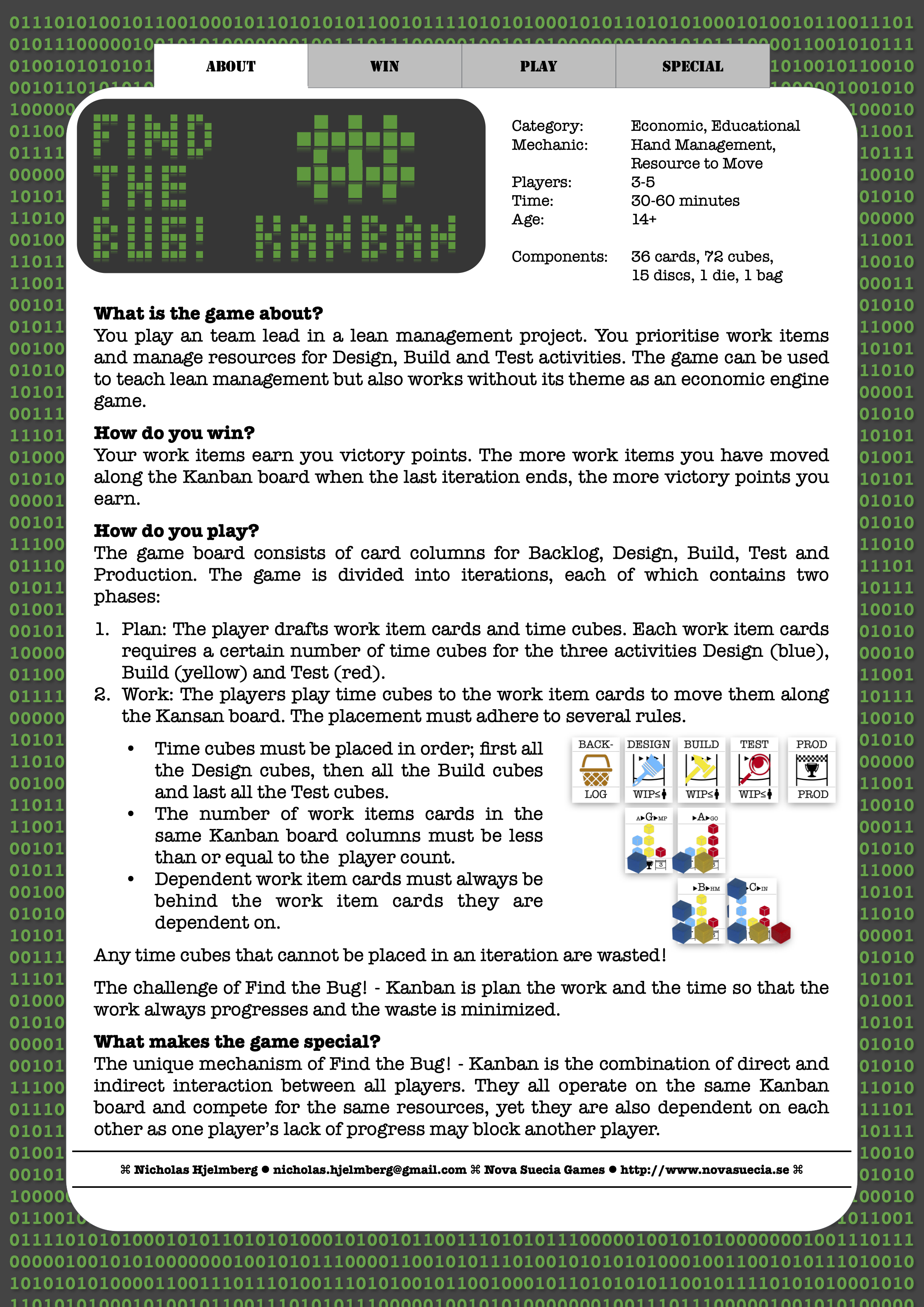 one but many objectives and your task is the name of the game: Find the Bug! Kanban.