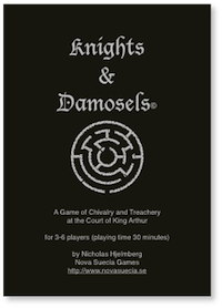 ach player starts with a knight (with no chivalry cards) and a damosel (with 9 chivalry cards). Each turn, the damosels play 1 card to a pool, from which the knights joust for the right to take cards. Each chivalry card is identified by a damosel's color on the back which is unknown to the knight. In addition, event cards are drawn each turn, in which knights may again joust for the right to play chivalry cards and earn worship points.