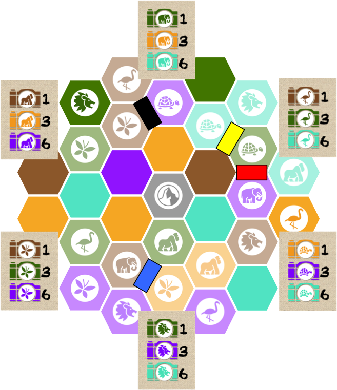 All players take photos this round except Yellow, who keeps driving without finding any animals. She hopes