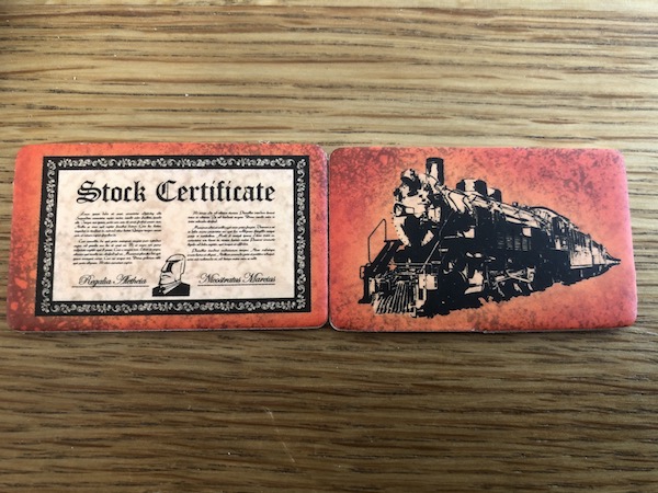 Nevertheless, every single mechanic is thematic. Shares are indirectly bid for through the turn order selection, where you often have to give up something to get the share you want. The share values are based on "true values", where difficult (costly) tracks decrease the value and connected cities (profitable) increase the value. The decision to buy a share is based not on past performance but on expected future performance, where even a bad company may be good for you if the value increases after you bought a share.