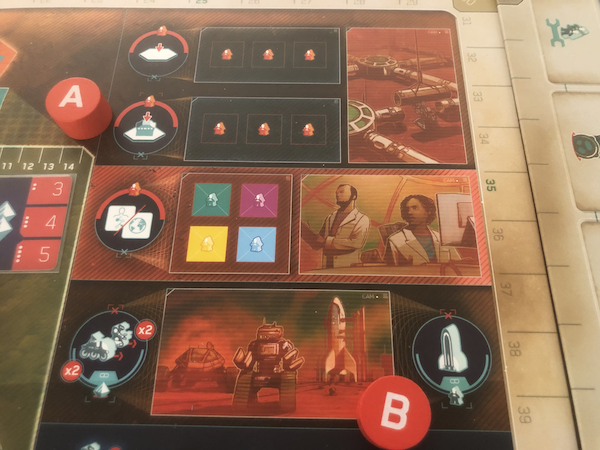 So why not start on Mars immediately and get this building done? Well, it wouldn't be a Lacerda game if it were that simple. There are many prerequisite actions that need to be taken and there are not one but two distinctly separate action boards.