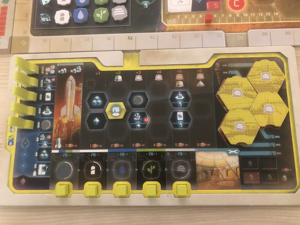This gives On Mars a game flow where buildings are built one at the time and where the players have to have the actions and the resources at hand to take advantage of the new buildings and the increasing LSS levels.