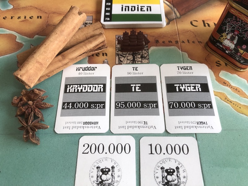 Perhaps Ostindiska Kompaniet should be compared to its contemporary competitors instead of looked upon from a modern boardgamer's perspective. The players do have more freedom than the dice-driven round track of Monopoly and the theme is definitely stronger. I would like to have seen a more sophisticated market mechanic, where the players can make better market predictions and either race each other for the currently most valuable goods or accept that they are behind and instead go for the next good to trend. Naturally, the real merchants of Ostindiska Kompaniet didn't have this information either but surely they had some kind of idea of which goods to return home with?