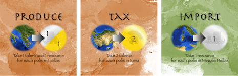 actions) and the symbols (to tell how talents, resources, citizens and city-states are used in the action).