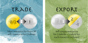 Thus, the "income actions" (Import, Produce, Tax, Export, Trade, and Build), whereby talents are moved from the