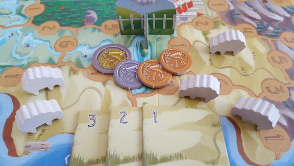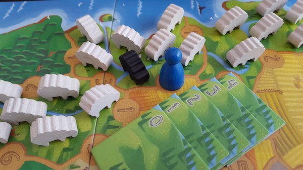 But what is the game about then? Herding sheep obviously. The board consists of six different terrains, each of which