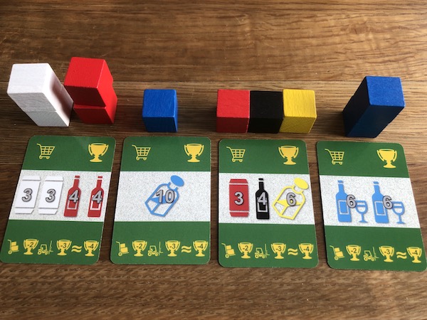 45 item cubes in representing item categories (beer, wine and liquor) and brands (white, blue, black, red, yellow).