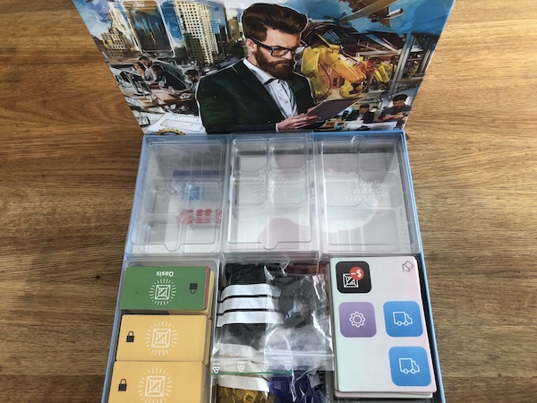 For such a streamlined game, the theme remains surprisingly strong. Similar to many real companies, the players' companies start local and need to find their competitive edges to go global. Low prices and/or technologically advanced products will help on the way but the different market conditions must be taken into accounts. Some markets look mainly at prices, others at cool features.