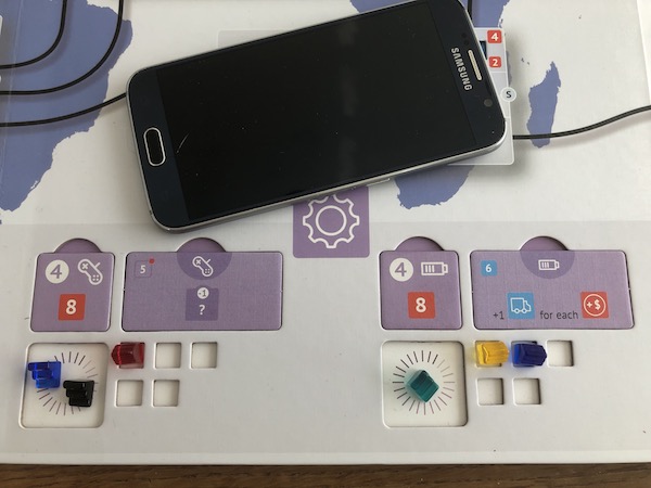 Another important thing to consider is that unsold smartphones cannot be saved for later rounds. (After all, who wants last year's model?) Thus, you really want to find a balance that exactly matches your supply with the customers' demand. Unsold smartphones are actions you could have used better while empty customer spaces are lost victory points (or, even worse, victory points claimed by an opponent).