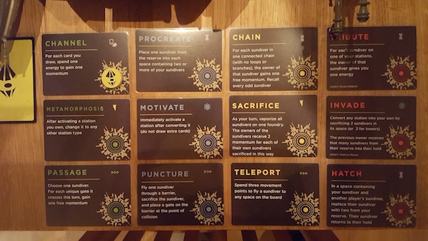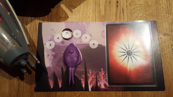 In addition, this adds a push your luck element that affects your decision to switch from converting new structures to activating existing structures. Does this make the game too random, e.g. will the player who is lucky enough to both convert and activate structures closest to the Sun win? Not really, the end of game can be fairly well predicted and there is one more rule that lets you use those sundivers that arrived too late to the Sun to convert to a useful structure: you can hurl them into the Sun to gain momentum AND draw instability cards to trigger the game end. Selfish? Maybe. Powerful? Indeed!