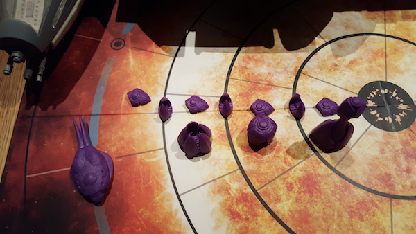 This mechanic provides the familiar return on investment dilemma. Since you have to invest actions to move closer to the Sun, should you build many cheap but weak structures far away from the sun or few expensive but strong structures close to the Sun? The answer is partly given by the game: the more you spread your structure, the more movement you get. Unfortunately it does limit your strategic options (focusing only on outer or only on inner structures is likely to fail) but perhaps the designers wanted to ensure structures in all layers of the Sun? No mater what, there is another important consideration as well: The Death of the Sun