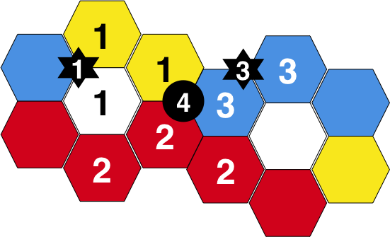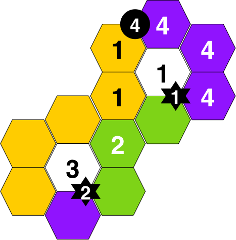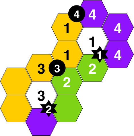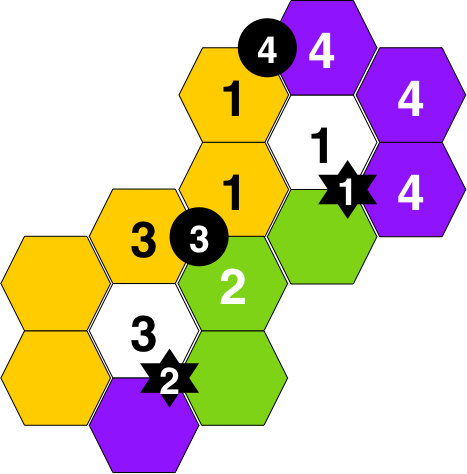 Buildings are annotated with the player number.