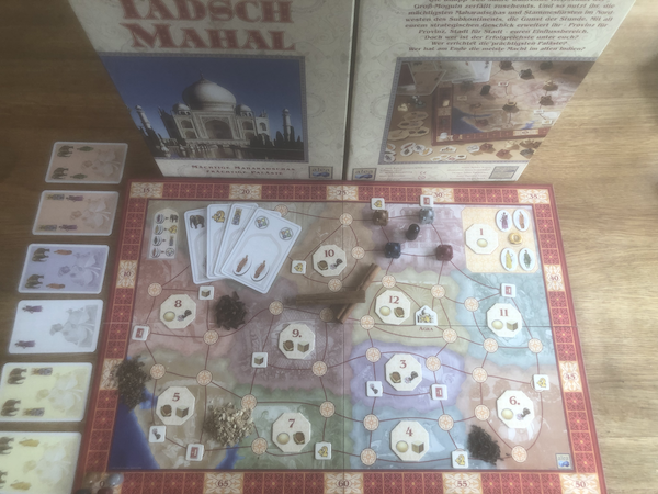 Taj Mahal is set in India. It is played over twelve rounds and each round corresponds to a province where the players bid for items used to