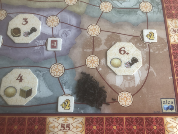 tile with one or two commodities depicted on it. If you win any of the four first, you get to place a palace in an empty spot in the province and