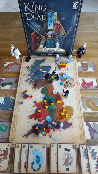 The King is Dead builds on the mechanics of area control, stock holding and hand management to create a highly restricted game. The few and limited actions must be considered carefully and a strategy must take into account the many and often contradicting tiebreakers in mind.