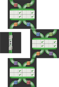 Component purple/yellow: Player 1 blue, player 2 yellow