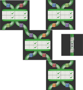 Component blue/green: Player 4 purple, player 3 green