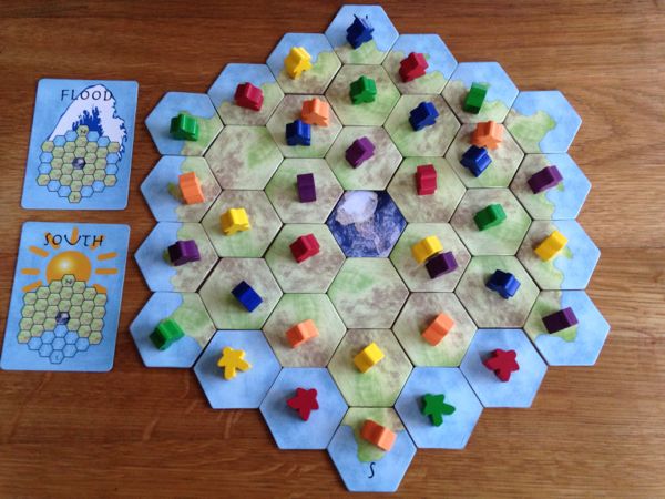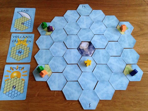 This triggers an apocalypse that flips the North Inner and Corner hexes, removing 1 black meeple.
