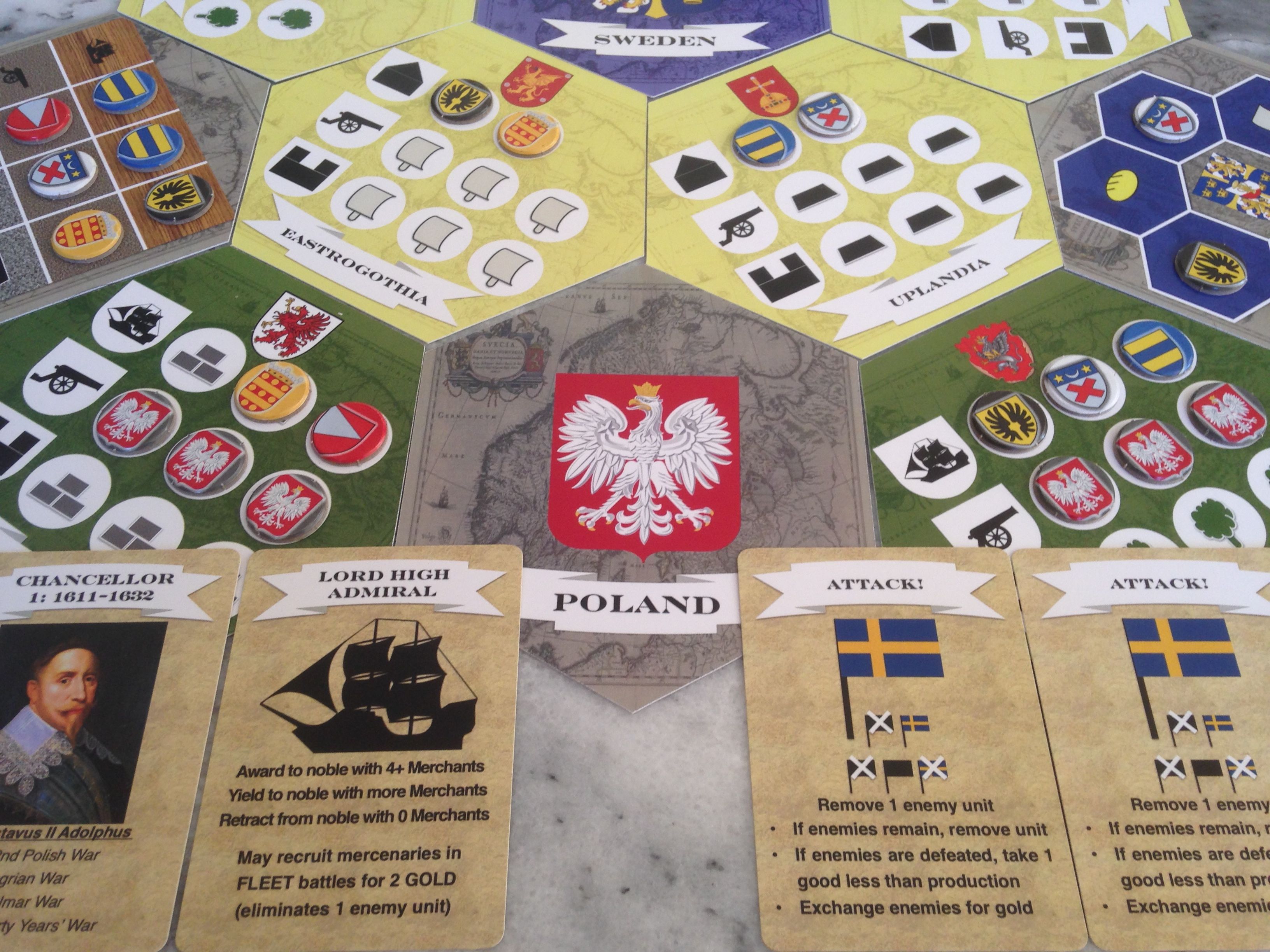 "This game of Swedish nobility is not the sort of thing that would normally turn my head but because it’s in ‘Flux Capacity Publishing Challenge’ I decided to give it the same attention as all of the other entries and I’m really glad that I did. You will see for yourself that all of the assets are really detailed and authentic looking. From the heraldic symbols to the historical mapping everything suggests attention to detail and a designer with a real passion for their subject. The rules suggest a game that is quite nuanced with elements of competition and cooperation. I see this as a game that would be the focus of a gaming night and one that would benefit from being played again and again by the same group of friends who like to learn and counter each other’s strategies. I think Mare Balticum will appeal to history buffs and strategy geeks everywhere and I for one would love to get to know it better."