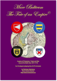 The turn order of Mare Balticum may seem backwards and that is actually the purpose. Production comes before battle for two reasons: The battle is supposed to disrupt the production and victorious armies should not be able to both loot and produce. Similarly, movement of new fleets, armies and forts to the game board comes before the investment to prevent players from investing and earning a return on the investment in the same turn. In addition, by having investment and movement before production and battle, an investment made in turn 1 will not start to pay off until turn 3. Enemy action comes in the middle to allow the players to move in response before the battle.