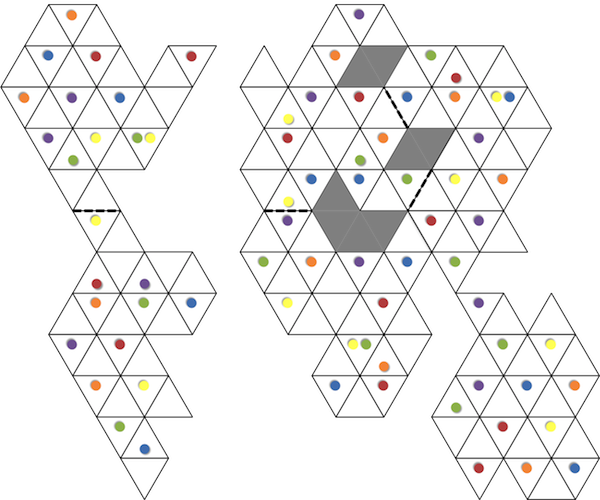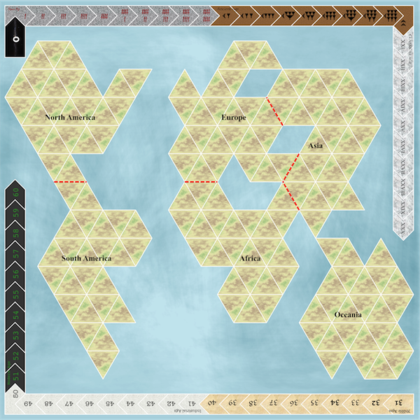 The first draft of the map experiments with triangular regions (inspired by another Colovini game,
