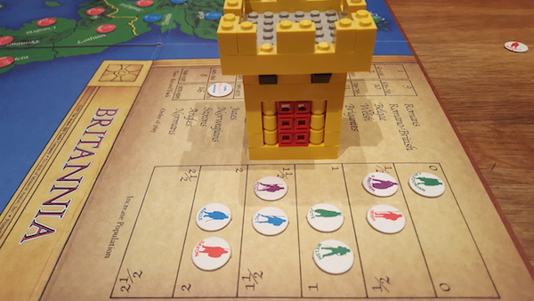 If this had been all there is to Britannia, the gameplay would have been underwhelming. However, what made Britannia stand out then and today still is its simulation of the historical tide. The players do not merely play one people each but rather all of the historical invaders of the island. For each player count, there is a list of peoples controlled by each player and almost each new round will see a new people arriving in Britannia.