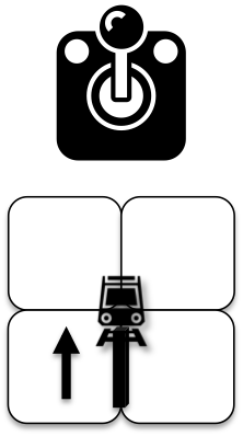 Move your train 1 grid point in the direction (if not occupied by another train) AND lay a rail behind (if not already a rail of your color there).