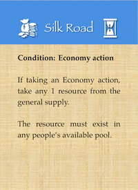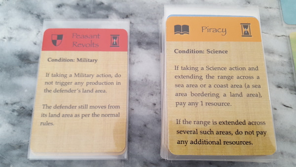 Mechanism 2: Event cards, random or influenced by the players themselves, dictate the game conditions for all players.