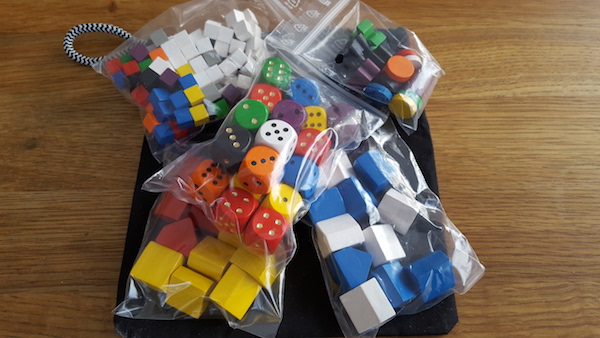 white (12 per player), which hopefully should be enough, and for the victory point cubes, I went with