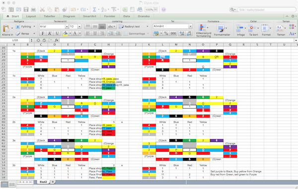 The initial iterations were done in Excel. First I tested "small turns" where one player action would be followed by one merchant