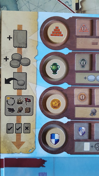 individual player boards; Industry, Culture, Finance, and Influence. At certain thresholds, new attribute levels will be unlocked which make your engine more